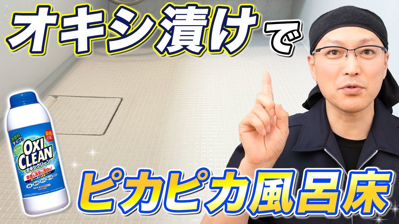 超ラク オキシクリーンでお風呂の床のカビや黒ずみを落として汚れ予防までする掃除術!,オキシ漬けでお風呂の床掃除をする方法を、具体的に分かりやすく実際に掃除をしながら解説しております!,目次 , 00:00 はじめに, 00:09使用するグッズ紹介 , 00:49 準備, 01:56 掃除を実践, 05:42 おわりに, 09:53 エンディング,オキシクリーンオキシ漬け。