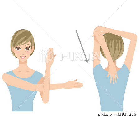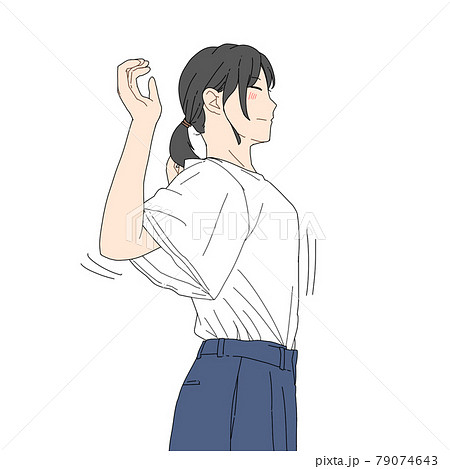 腕を引いて肩甲骨をストレッチする女性2のイラスト素材79074643- PIXTA。