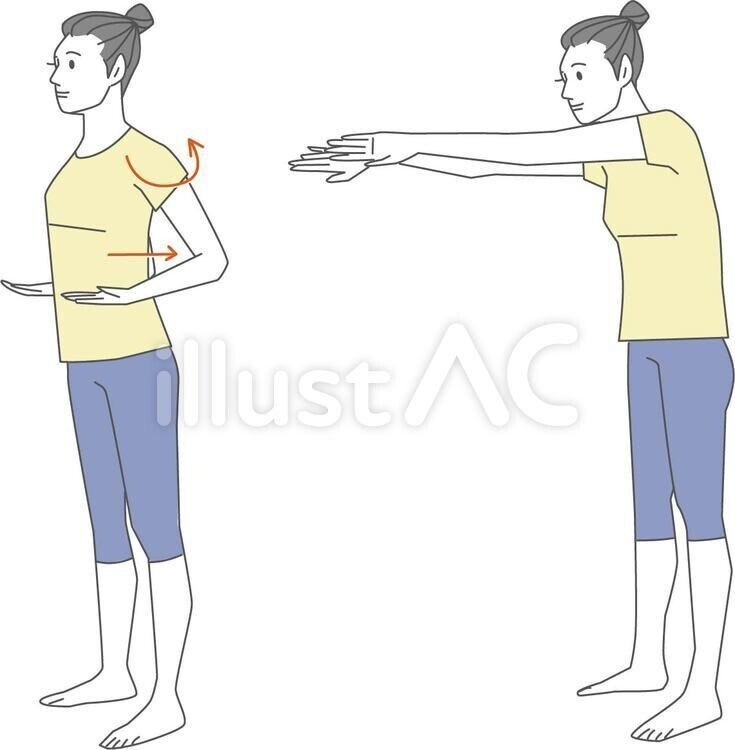 猫背改善 肩甲骨ストレッチのイラスト素材199386337 毎月1点無料 フリー のストックフォト イメージマート。