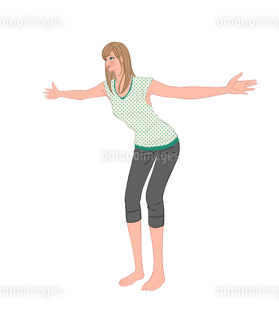 肩甲骨のストレッチをする女性のイラストのイラスト素材101034249- PIXTA。