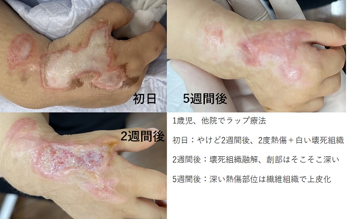 やけど治療川添医院ホームページ:ヤケド:火傷:治療例:手:足:胴:シミ:瘢痕:痛くない治療:川添医院HP example68 index。