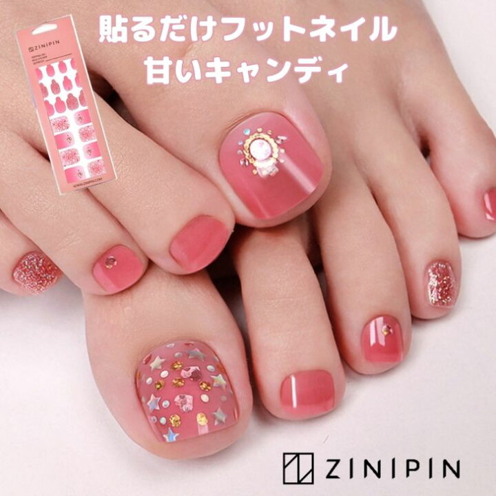 楽天市場 フット ネイルシール ZINIPIN ジニピン 貼るだけ ジェルネイルシール甘いキャンディ ネイルシール フットネイル セルフネイルピンク シロップネイル ラメ ペディキュア 時短 トレンドネイル かわいい おしゃれ 大人 足 爪 半透明 デザインネイル 韓国。