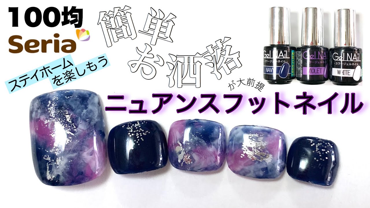 セリアジェル ステイホームを楽しもう!簡単お洒落が大前提‼︎ニュアンスフットネイル foot nail。
