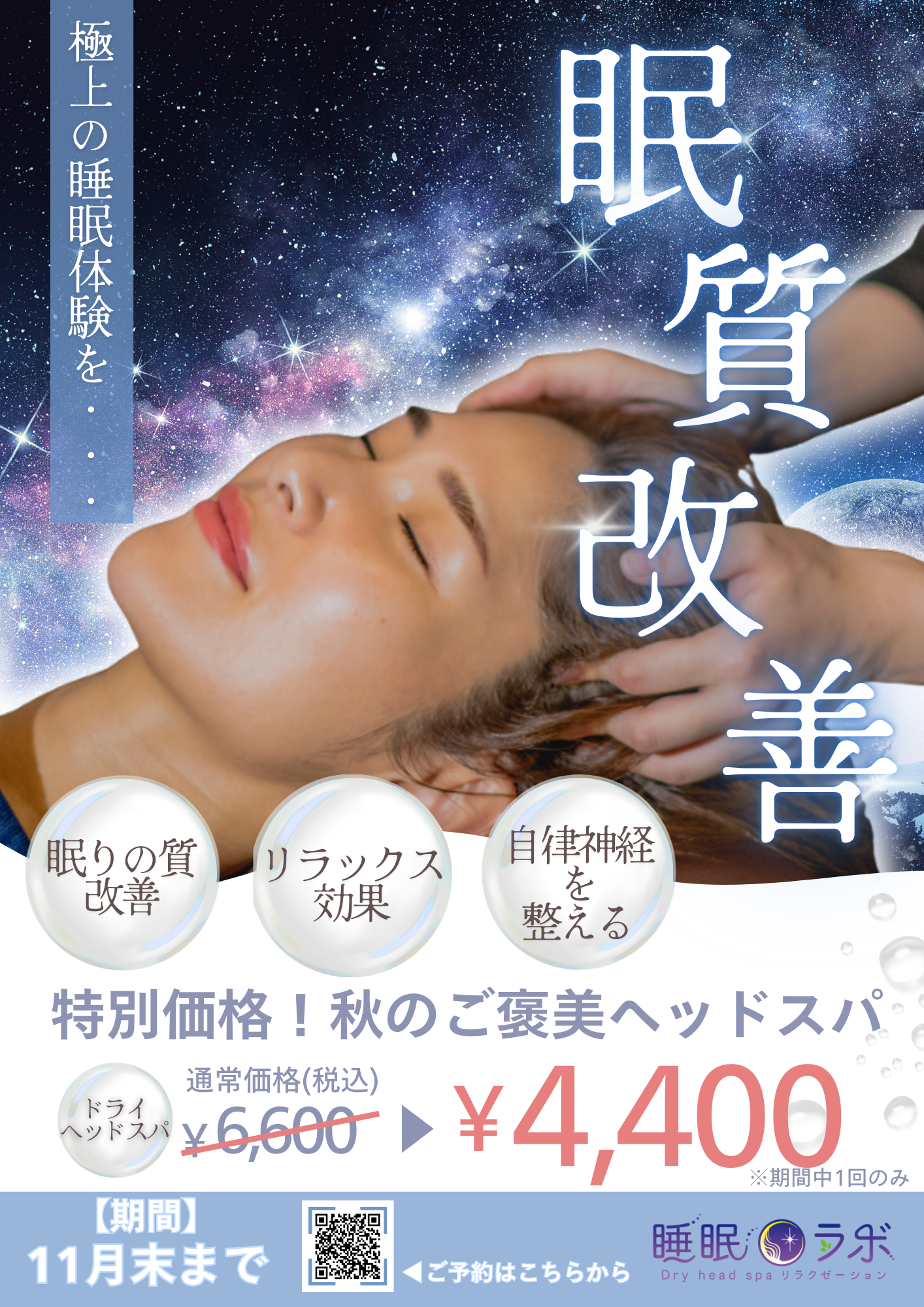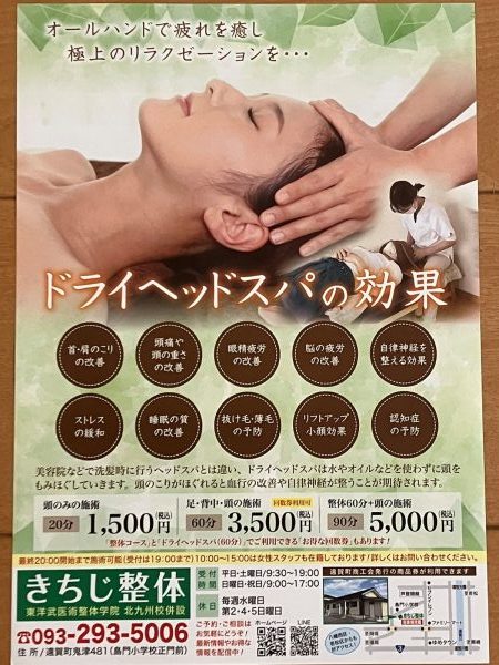 ドライヘッドスパ~極上の睡眠を~秋田市御所野の秋田アール整体院。