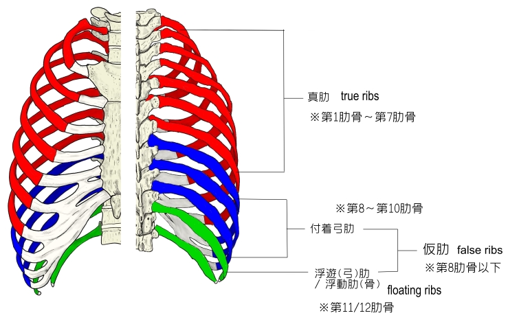 肋骨 ろっこつ とは?場所・位置や英語などを人体解剖図で解説 - teamLabBody。