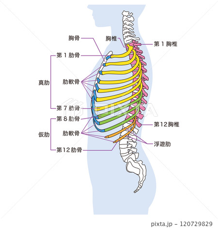 肋骨と胸椎のしくみ 骨格 横図 医療のイラスト素材120729829- PIXTA。