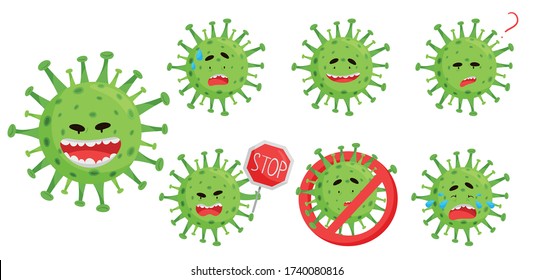 Covid19コロナウイルス絵文字ベクトルセット。感情のあるコロナウイルス絵文字のイラスト素材・ベクター Image 167833884。
