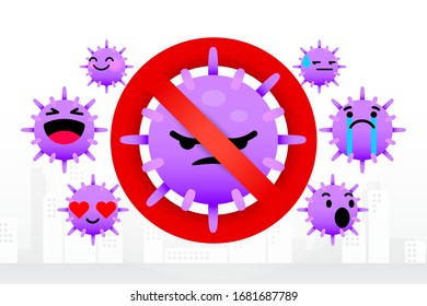 コロナウイルスのベクター画像。コロナウイルスの記号細菌アイコン寄生虫の警告。医療用絵文字警告。イベントイラストの微生物をキャンセルします。Covid-19停止標識。ncov-19細菌。危険なウイルス感染。」のベクター画像素材 ロイヤリティフリー1668267574。