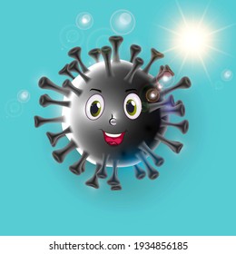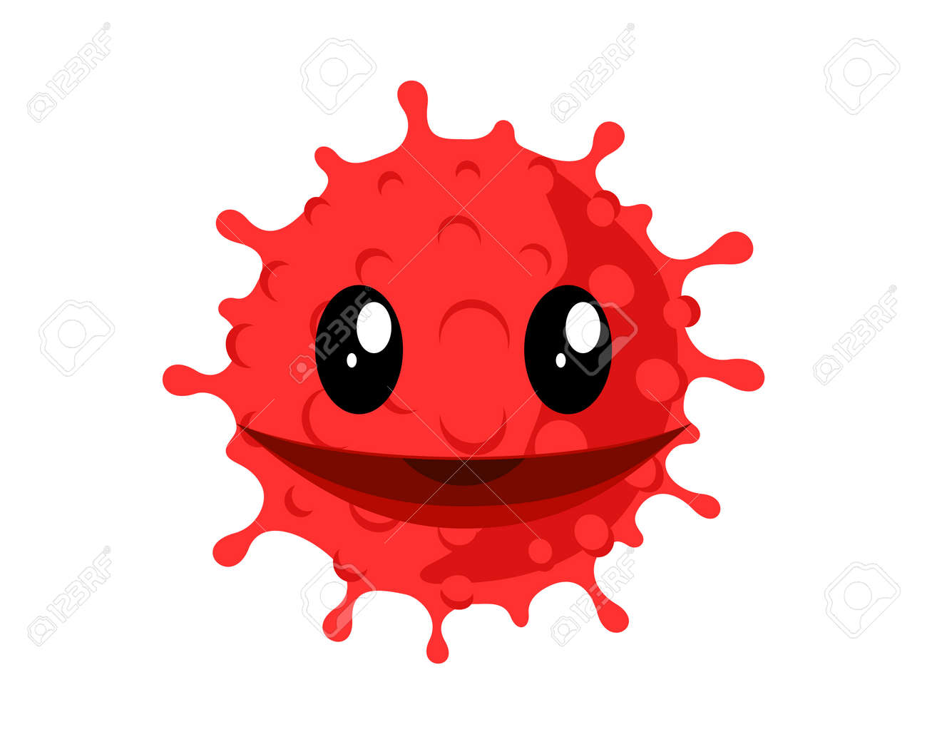 ウイルス絵文字カワイイ顔。面白いかわいいウイルスキャラクターアイコン。笑顔の感染マスコット。ベクトル分離イラストのイラスト素材・ベクター Image179062410。