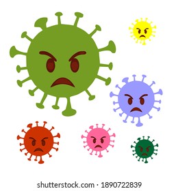 ウイルスの絵文字、covid-19絵文字文字感染、怒っている顔、フラット漫画スタイルのベクトル図のイラスト素材・ベクター Image 150138552。