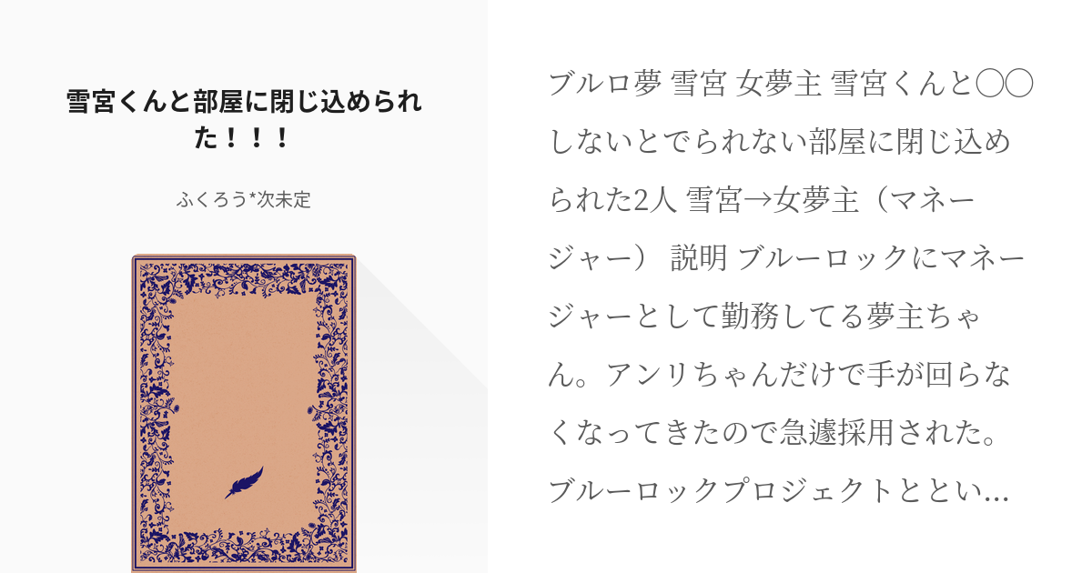 1 雪宮くんと部屋に閉じ込められた!!!ブルロ夢 - ふくろう*次未定の小説シリーズ - pixiv。