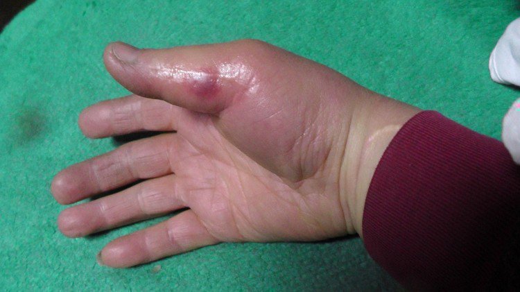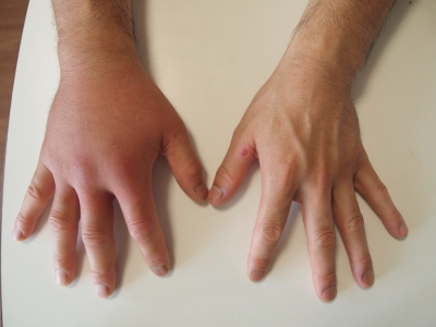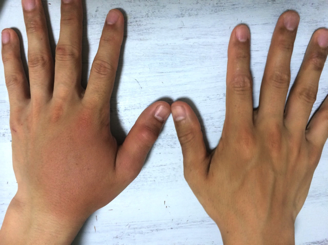 刺された・軍手の上から「チクリツ」とやられました 右手が腫れあがり。