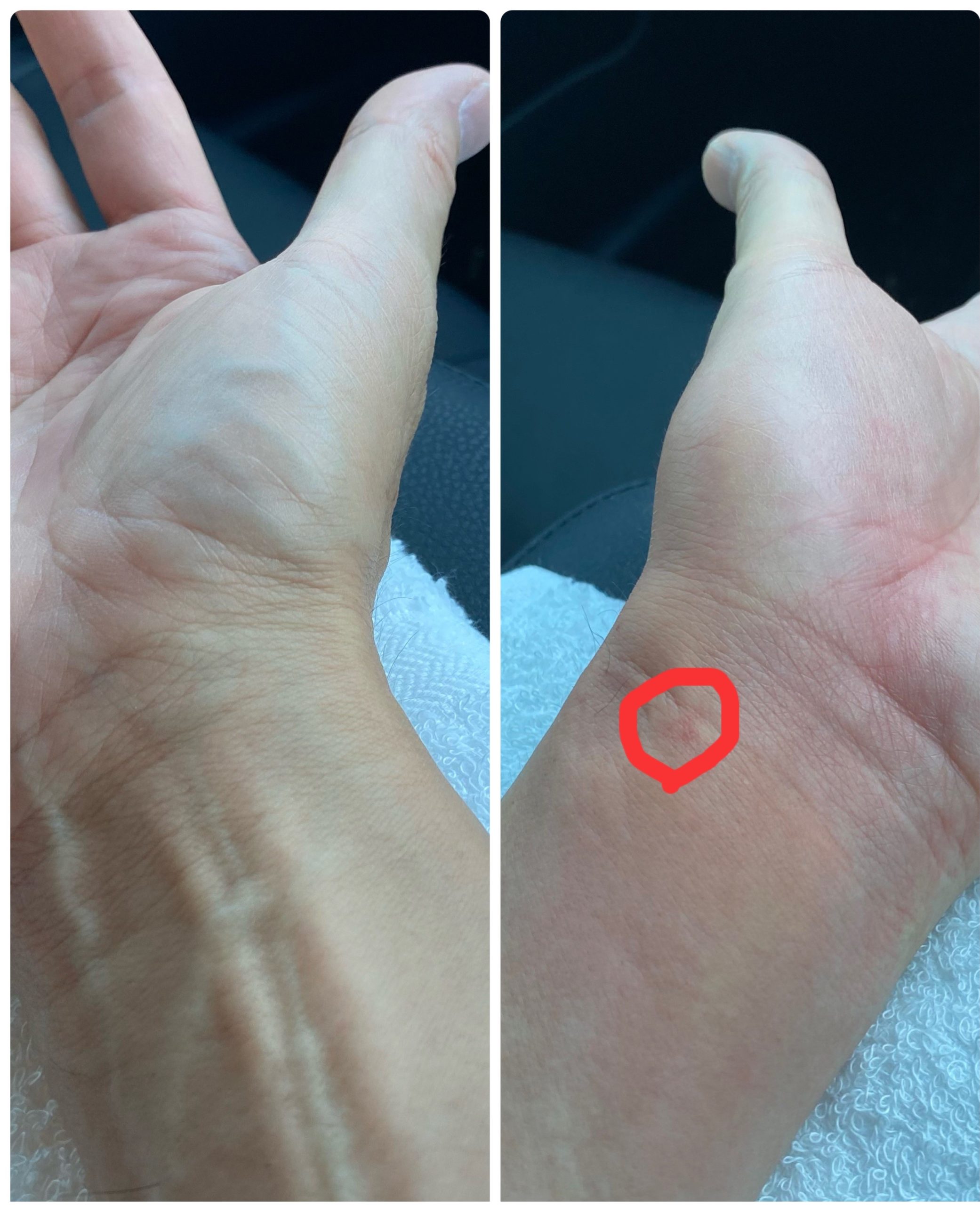 スズメバチ🐝に刺されました💦 刺されたところをじっくり見ると、毒針が刺さっていてリアルでした😅 ※ミツバチか?よく言われる一瞬火傷をした様な感覚でしたが、その後「ズキズキ」「ジク」「ズーン」と痛さのオンパレードでした💦 蜂に刺されたのはこれで恐らく4回目。