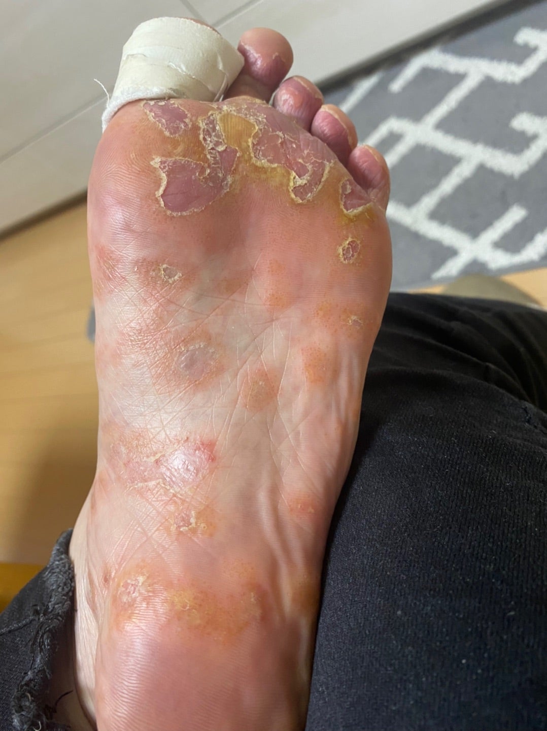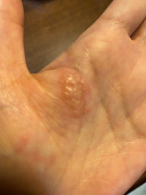 侍オニヘイ on X: "火傷、昨日から水ぶくれが凄いことになってきて 三つあったのが合体した 母が怖がって仕方ないので、さすがに皮膚科行ってきます😱タプタプして、気持ち悪いがどうなってるんだろう今日も在宅で良かった https:t.co M1r8yT6xkU"X。
