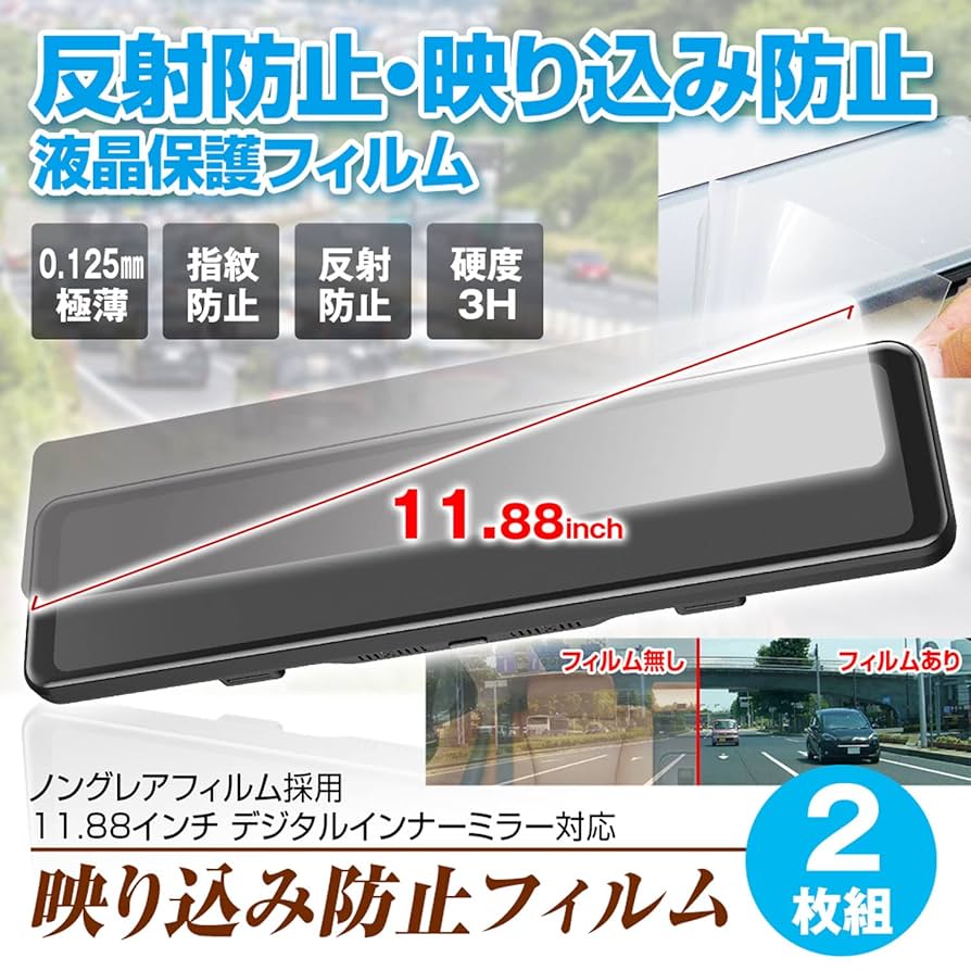 Amazon映り込み防止フィルム 11.88インチ デジタルインナーミラー専用 反射防止 ZDR038 DVR-EM4800 対応 2枚セット指紋防止 アンチグレア 超薄 K-FILM01保護フィルム車&バイク。