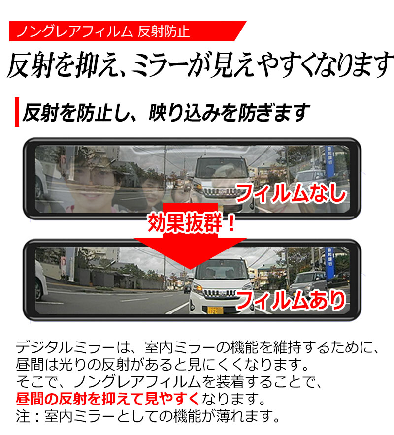 映り込み防止フィルム 11.8インチ ミラー型ドライブレコーダー インナーミラー KY-DID01 対応 デジタルインナーミラー 反射防止全面保護フィルム 2枚セット 指紋防止 液晶保護 ノングレア アンチグレア スクラブ フィルムKYPLAZA楽天市場店。