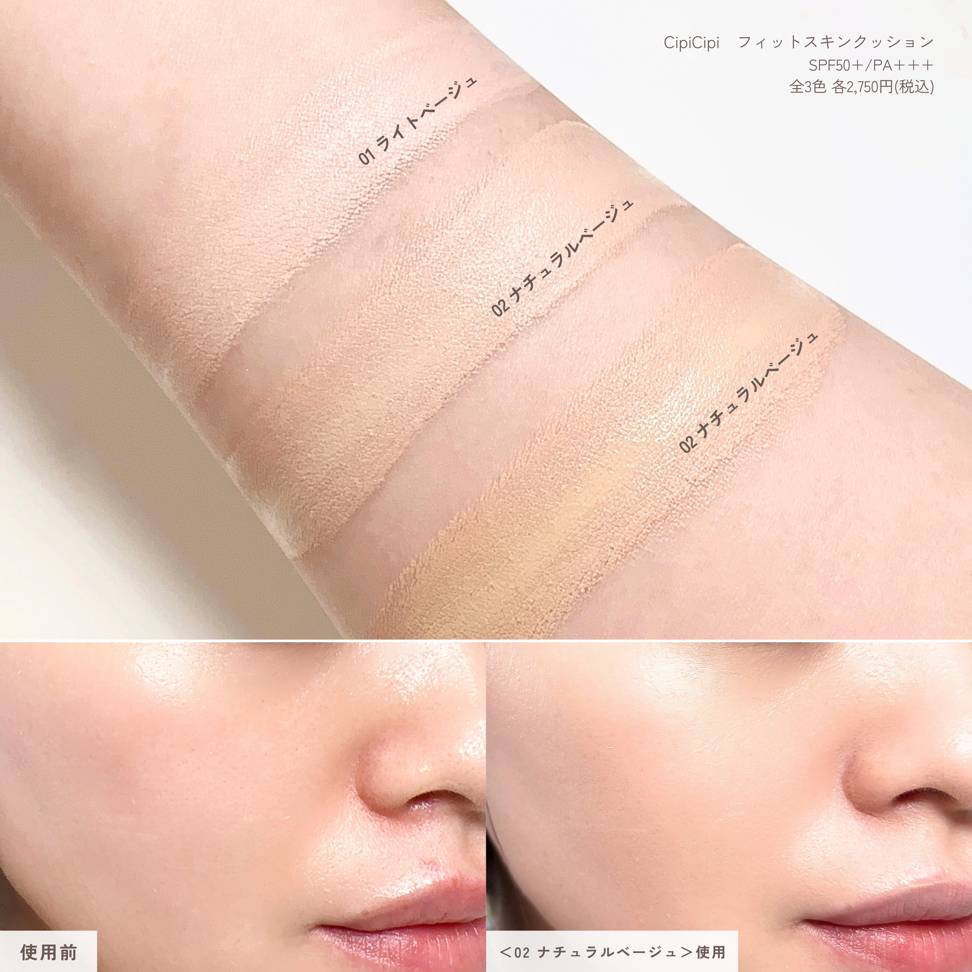 Amazon公式 CipiCipiシピシピフィットスキンクッション 02 Natural Beige 15gクッションファンデーション 崩れにくい カバー力CipiCipi シピシピパウダーファンデーション 通販。