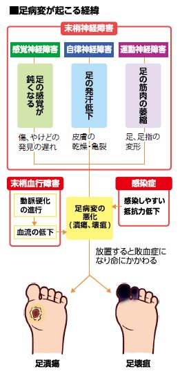 糖尿病性足病変 症状と診断、フットケア 日本医科大学武蔵小杉病院。