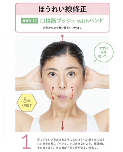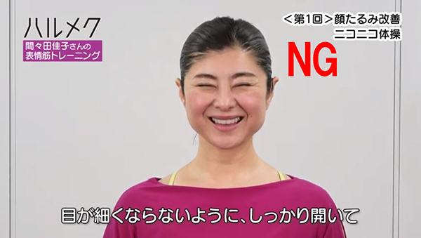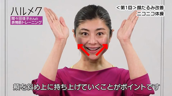 1回僅か5分!顔たるみ改善、表情筋トレーニング講座ハルメク美と健康。
