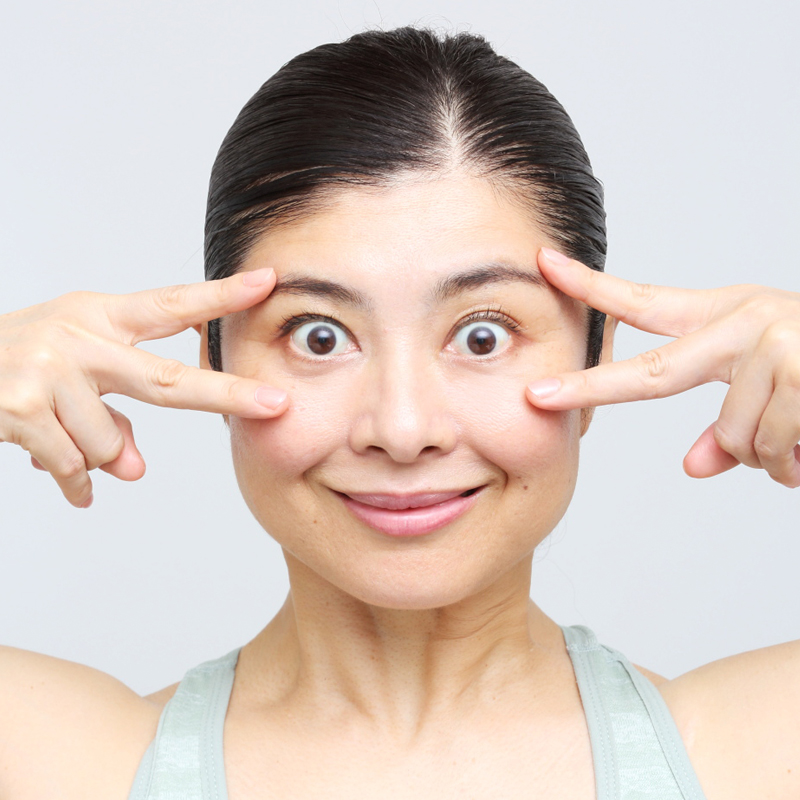 まぶたのたるみ、むくみを改善!5分で若見え!間々田式表情筋トレーニング 第1回 伊藤園の公式通販「健康体」。