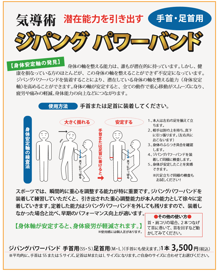 ジパングパワーバンド 手首・足首用日本気導術学会。