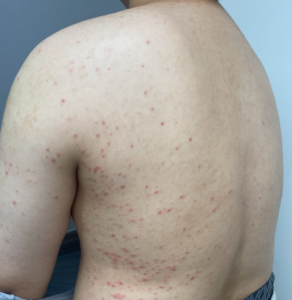胸、背中、二の腕ぶつぶつは治りにくいニキビ?ではなくマラセチア毛包炎かも・背中ニキビ難治性ニキビ あゆ皮フ科クリニック高槻市の一般皮膚科・小児皮膚科・皮膚外科・美容皮膚科。
