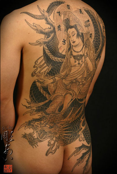 刺青デザイン和彫り 観音 龍 騎龍観音 背中一面 神仏 刺青画像 : 騎龍観音タトゥー デザイン.刺青デザイン ほりはく日記 和彫り.ワンポイントタトゥー.トライバルタトゥー.タトゥースタジオ。