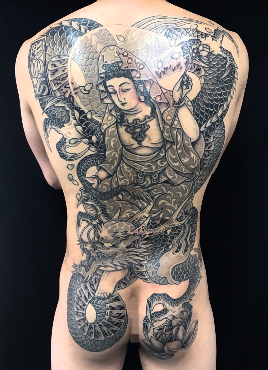 騎龍観音 刺青 和彫りタトゥー 京都刺青 辻彫り 日式刺青japanesetattooartjapanesetattooartisttattooirezumi。