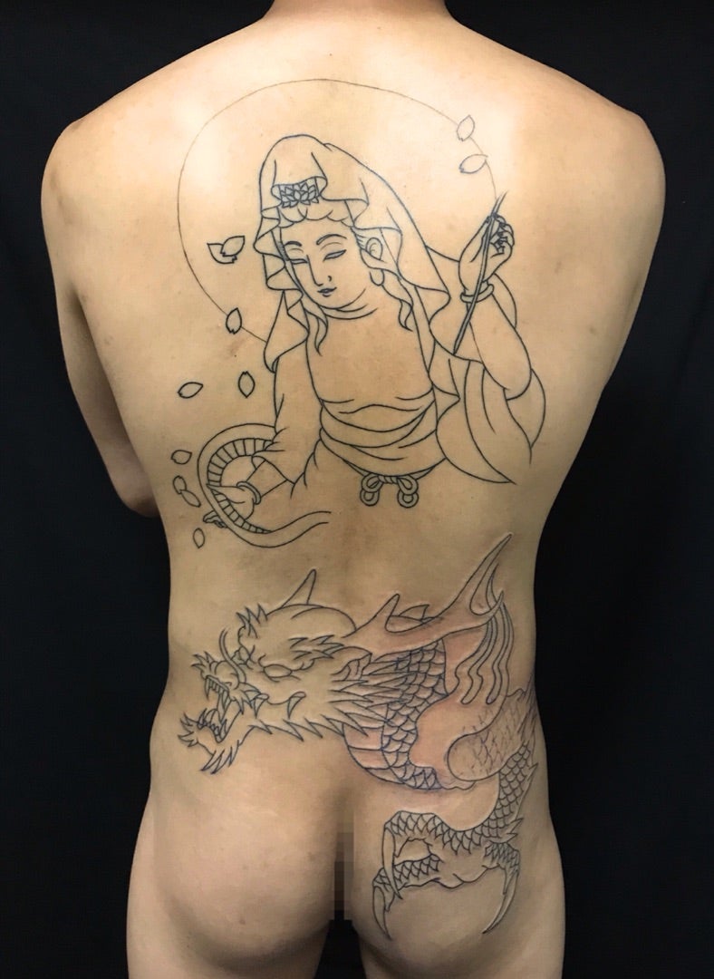 ひとつ前に載せた騎龍観音のお客さんの腕はtattooなんです ※この画像は刺青作品の画像です、 性的搾取や裸体を見せたい等の意図はありません。 Theposted image is an introduction to the tattoo work, there is no sexualintention彫八一門彫八刺青工房刺青。