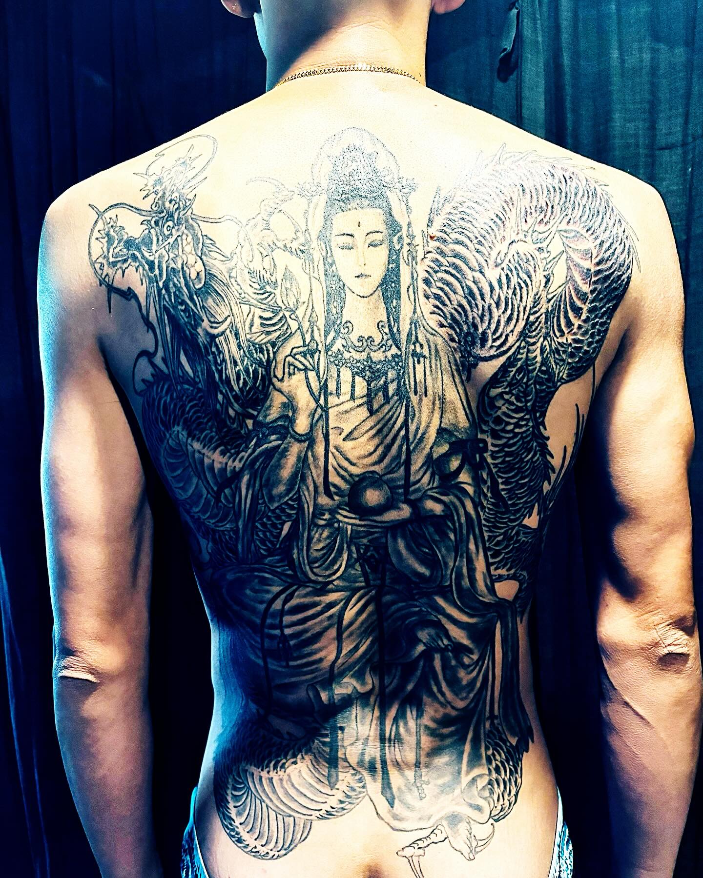 刺青作品「龍頭観音 騎龍観音 」刺青「彫あい」日本伝統刺青。