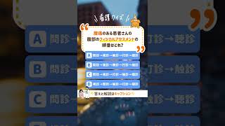 👇解説はここ👇 「正解したよ!」って人はコメント欄に「❤️」で教えてね! 🤍フィジカルアセスメントの問題🤍 Q.腹痛を訴える患者さんへの腹部の フィジカルアセスメントの順番はどれでしょうか? 🤍解説🤍 正解は 問診→視診→聴診→打診→触診 です!🎉 一般的な。