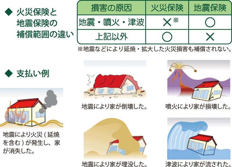 火災保険だけでは、地震・噴火またはこれらによる津波を原因とする火災損害は補償されません。有限会社田中保険企画 - 愛知県半田市 保険代理店。