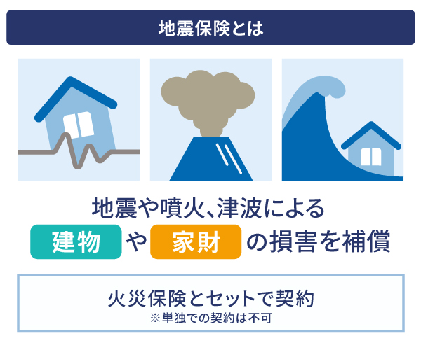 火災保険だけでは不十分?地震や地震が原因の火災や津波による損害の補償は、地震保険の補償内容です。