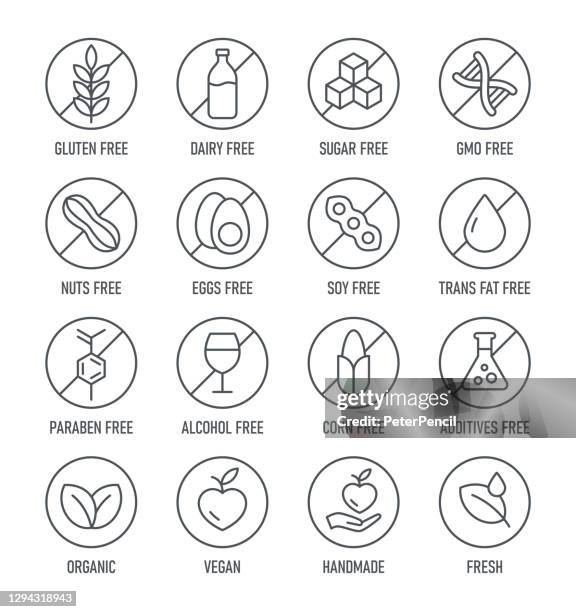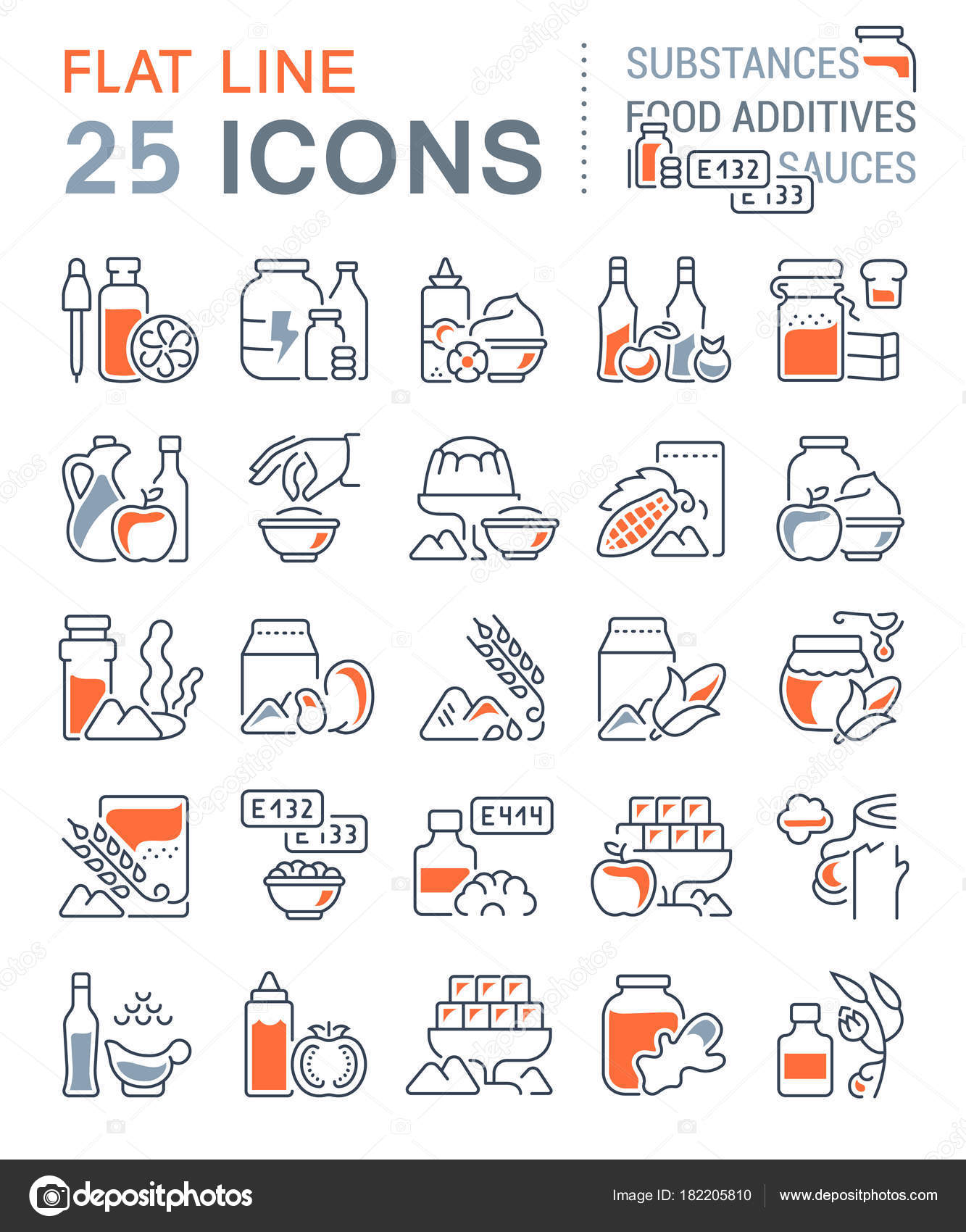 食品添加物のライングレーアイコンのコレクション。クリエイティブプロジェクトやアプリに関するベクター画像の単純なコンセプトのセット。Infoグラフィックエレメントと絵文字。」のベクター画像素材 ロイヤリティフリー1005619396Shutterstock。