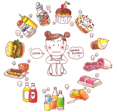 健康食品メーカー様 添加物についての紹介イラスト 1Ozeki Keiko illustration。