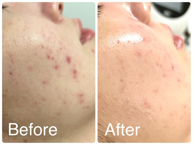 salon de allonge. -施術4回目のbefore after お写真のお客様は、高校〜大学時代にニキビが酷くなり、現在は落ち着いたもののクレーターに悩まれご来店されたお客様 28歳OLさん セルフケアではほぼ改善不可能なのが、クレーター。 当サロンへご来店される。