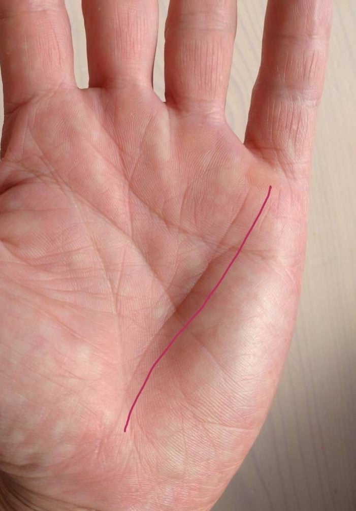 生命線の内側から伸びる長い財運線を持つ人は、身内の援助で財を得る。