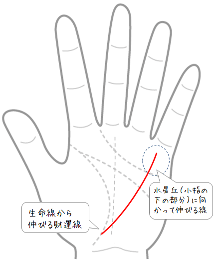 生命線から伸びる長い財運線自身の努力により財を得る人手相の見方。