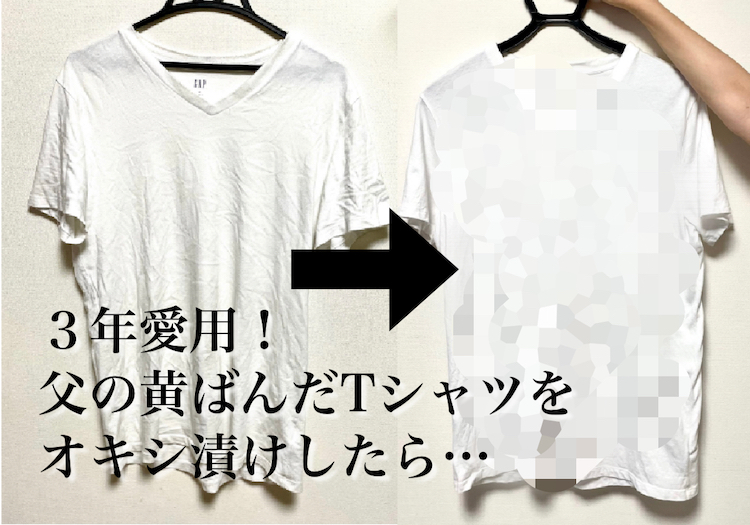 夏のオキシ漬け 白Tシャツの黄ばみやシミ、黒ずみを“オキシ3時間漬け”してみた!衝撃のアフター!2024年8月17日- エキサイトニュース。