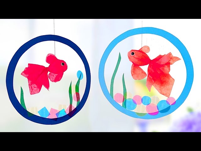簡単✨お花紙・折り紙 金魚の吊るし飾り🐠壁面飾りの作り方 全部100均 夏の風物詩で清涼感UP🎐 - YouTube。