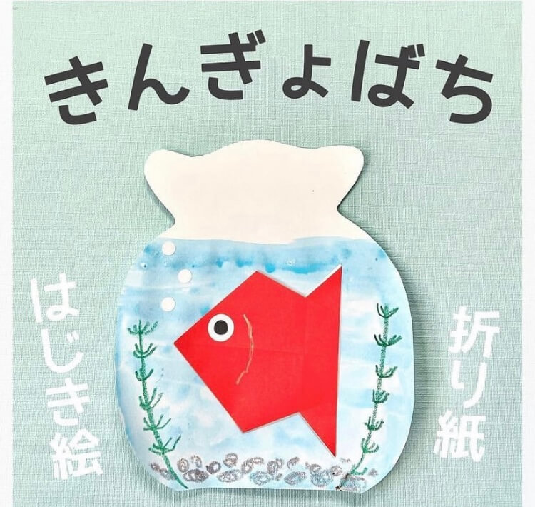 金魚折り紙 3歳児 4歳児 5歳児 簡単!はじき絵で金魚鉢製作。