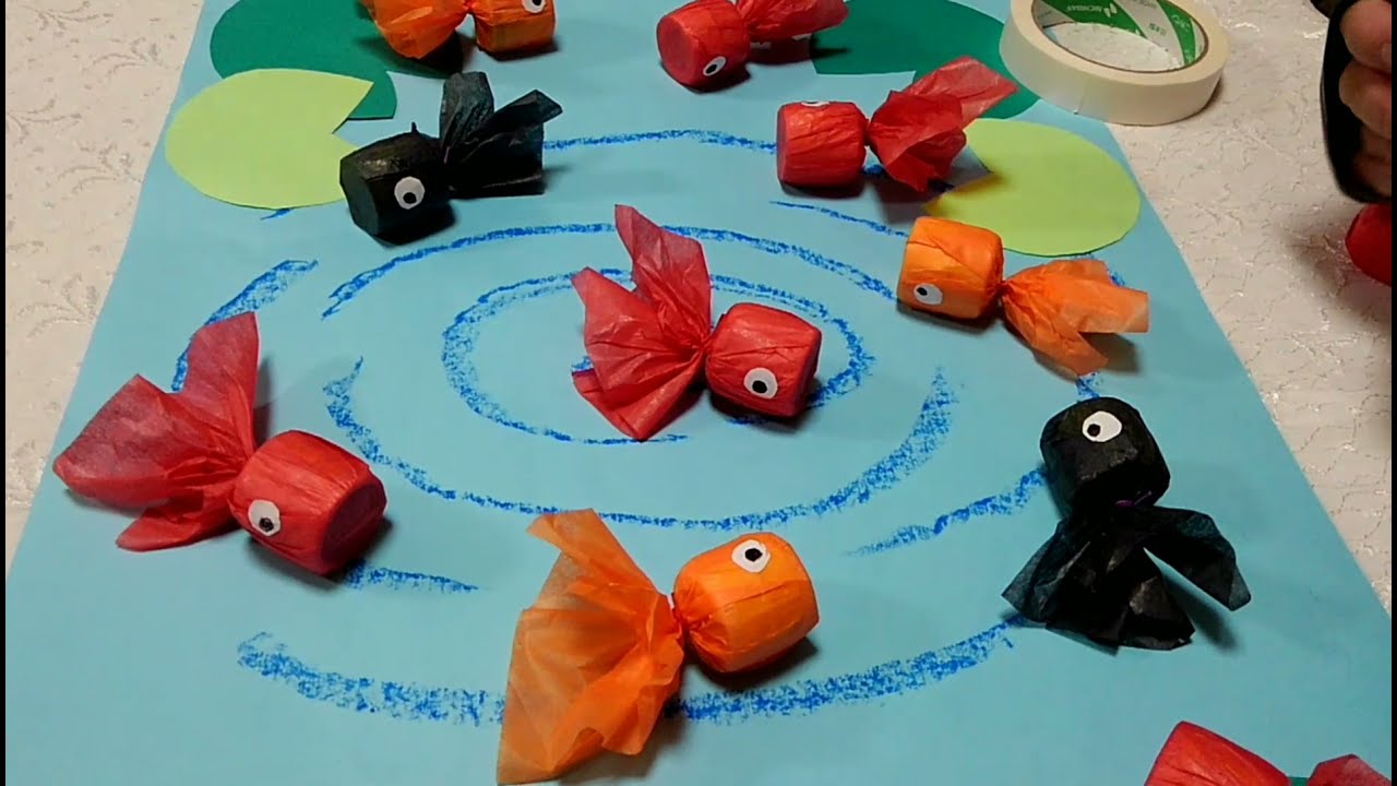 工作ネタ 金魚 Goldfish 8月壁面飾り・夏高齢者レク デイ 作業療法OT 保育 ゆらゆら飾り- YouTube。