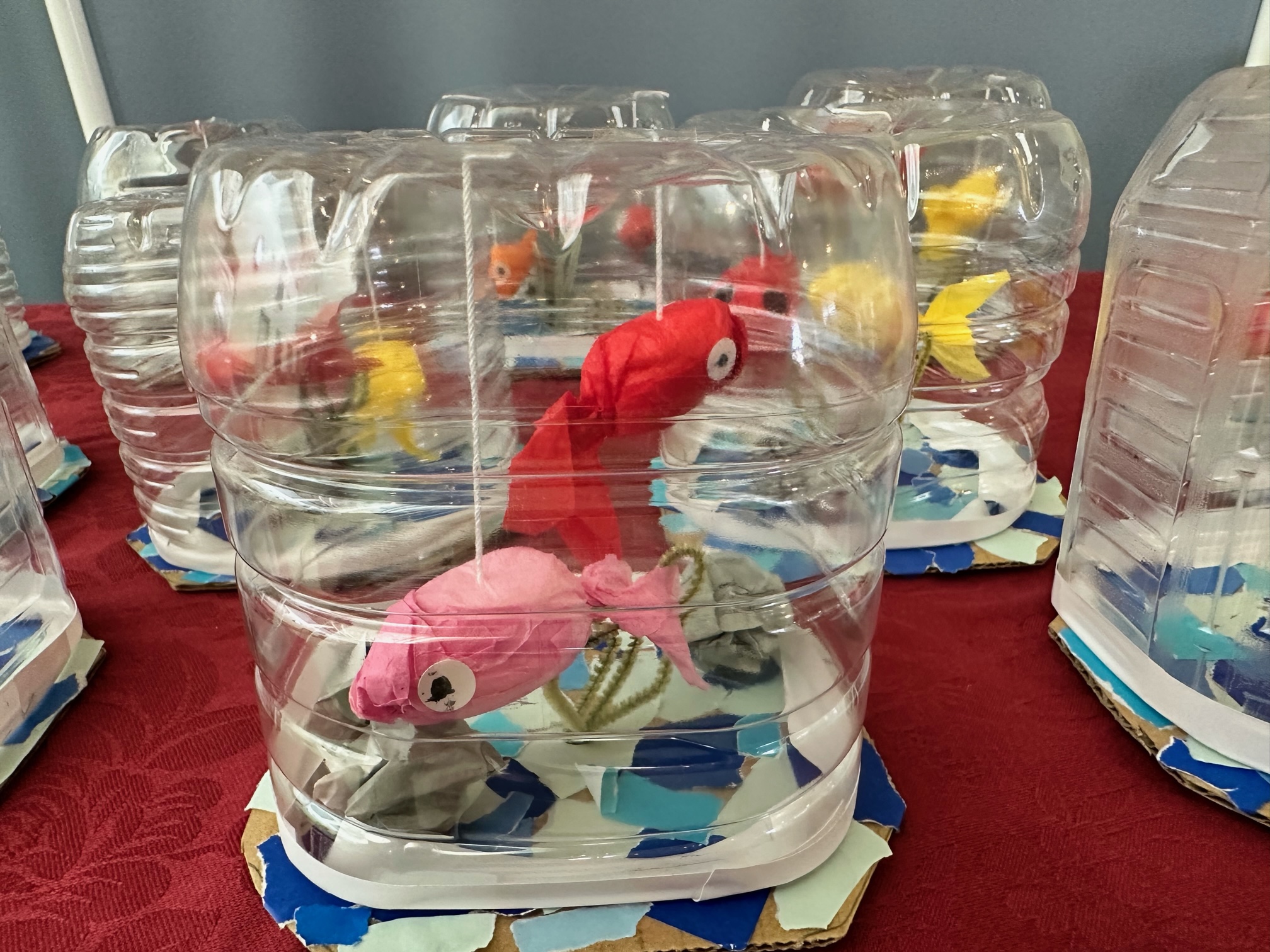 ピュアローズ🌹さんはInstagramを利用しています:「デイサービスでの創作レク クラフトバンドで 金魚鉢をイメージして作りました😊置くことも吊るすことも出来るます。 皆さま楽しんで下さいました🤗パンチバンチ」。