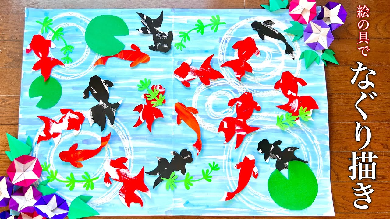 『金魚』の壁面飾り・なぐり描きを使って・紙皿金魚鉢・うちわ・夏の製作❤︎How to make a goldfish papercraft paints scribble❤︎ 799。