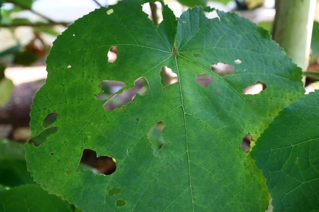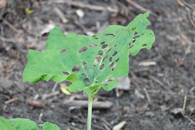 ゴボウの葉を食べる害虫 害虫対策の考え方Premium写真。