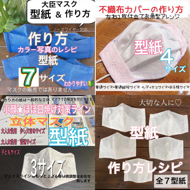 4タイプのマスクの作り方 21型紙不織布カバー大臣舟形立体マスク小顔日焼け防止 の通販 by みかんラクマ。