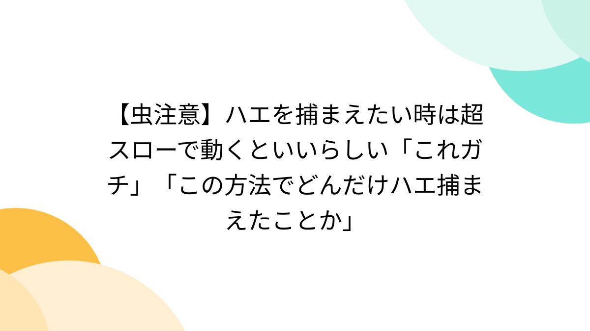 虫注意 ハエを捕まえたい時は超スローで動くといいらしい「これガチ」「この方法でどんだけハエ捕まえたことか」 - Togetter。