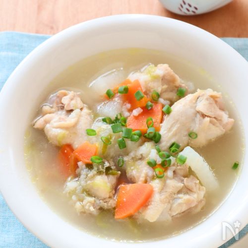 参鶏湯レシピ鶏の骨付き肉と鶏もも肉で手軽、味は本格的に。