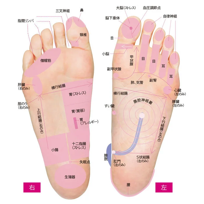 足の甲・足裏のツボとは?リフレクソロジーの反射区マップ!リフレクソロジーAll About。