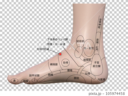 足裏の反射区・足つぼ 図解イラスト 英語版173086787 毎月1点無料 フリー のストックフォト イメージマート。